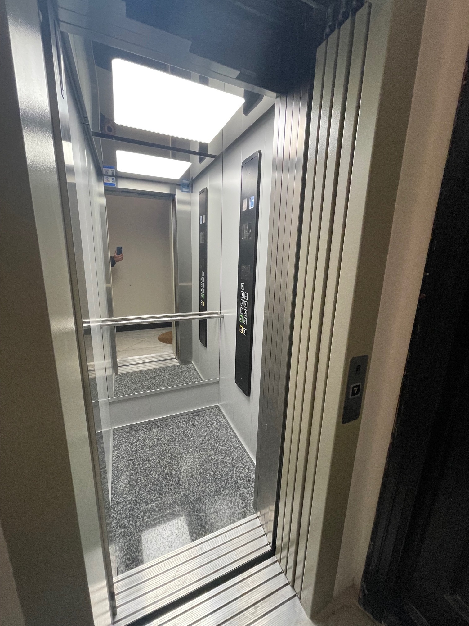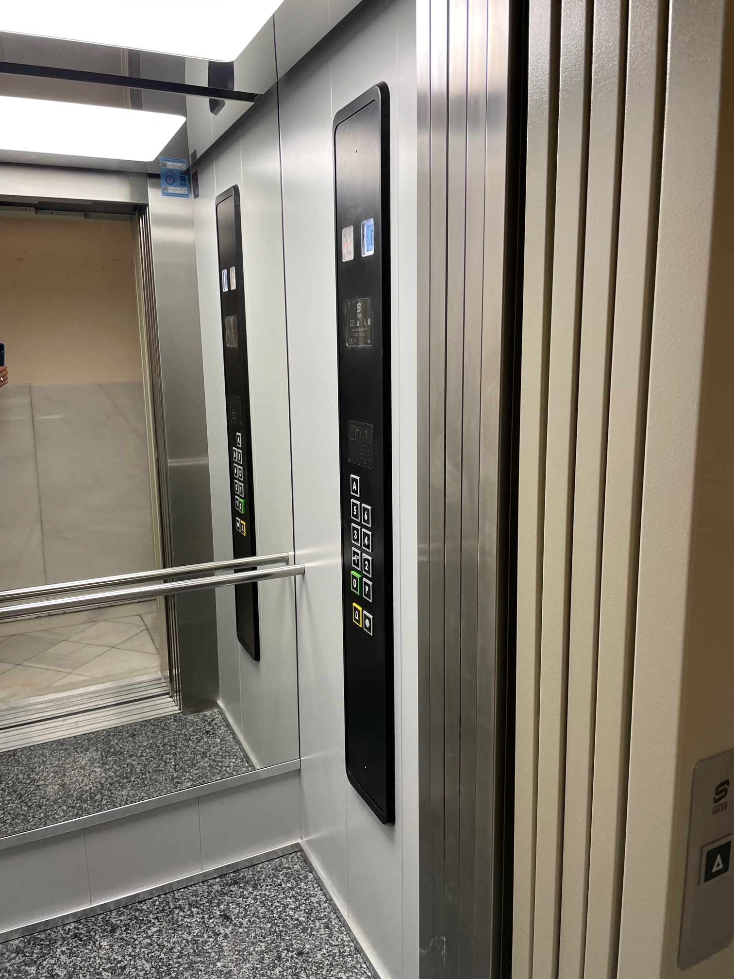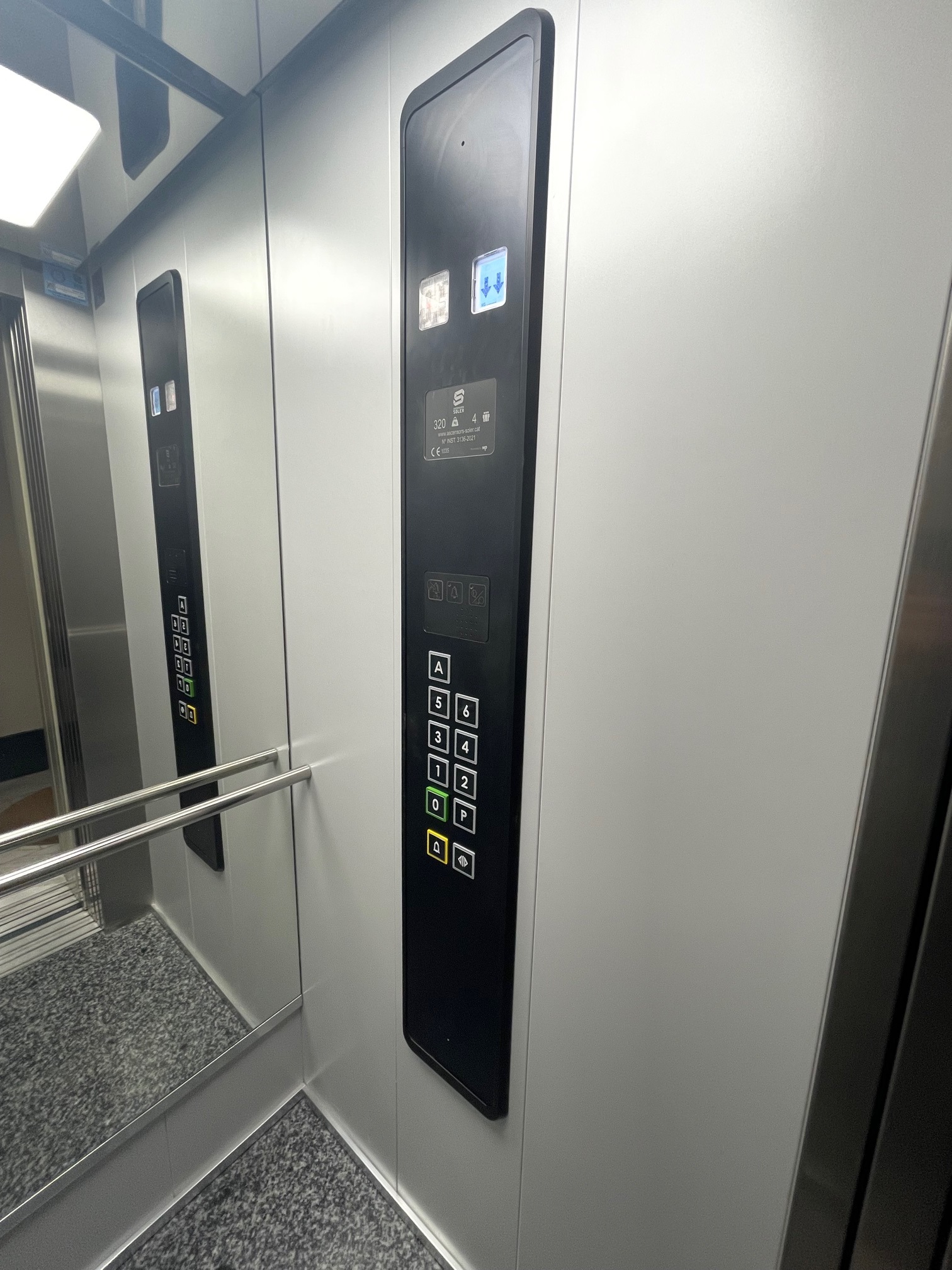El nuevo equipo incorpora puertas automáticas en la cabina y en los rellanos de cuatro hojas, adaptadas al espacio reducido existente, mejorando así la comodidad, la seguridad y la accesibilidad de la instalación.